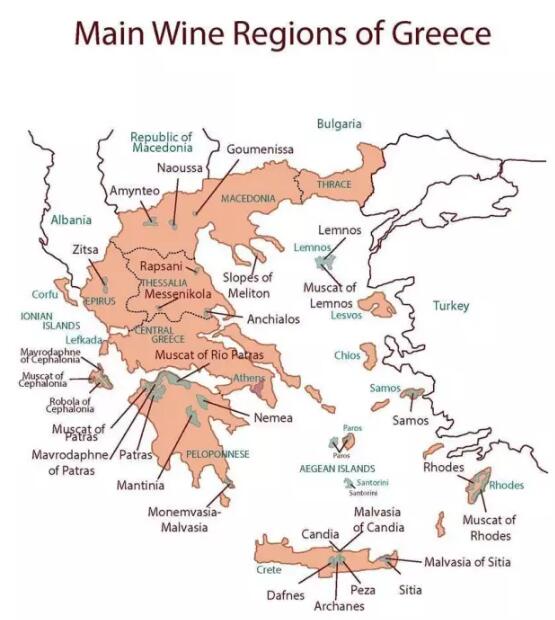 希臘擁有113000公頃的葡萄種植面積,其中有五分之一的人口從事葡萄種植行業,全國約500 多家酒莊生產葡萄酒。而且一直在增長中。希臘位于地中海沿岸,整體氣候較炎熱,但地形錯綜復雜,加上海島眾多,受海風影響,又形成眾多的微型氣候。總的來說,希臘南部沿海的大部分地區都屬于地中海式氣候:夏季炎熱干燥,冬季溫和多雨。但北部靠近內陸地區,則多為大陸性氣候,較為涼爽,某些地方的葡萄甚至無法完全成熟。