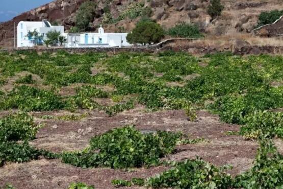 由于圣托里尼島獨特的生態環境,葡萄生長不受根瘤蚜蟲的威脅,因此,它可能擁有世界上最古老的葡萄園,據估計有3500 年的歷史,大多數葡萄平均有50-100年的樹齡或者更老。為了抗風防曬保護葡萄果實,這里的葡萄藤被人為地編織成環形的藤蔓籃筐,酷似鳥巢。這是一個傳統的技術。葡萄藤被貼地盤繞成環形籃筐狀,使得葡萄果實在籃筐中生長,上面有葉片的保護,使其不受強風和強烈陽光的傷害。為了通風,還在藤蔓下部墊上石塊,以便空氣流通。每年葡萄園種植師就會把新的枝蔓或剪除或編進筐里。慢慢地,鳥巢就越積越大。由于土地的貧瘠和這種特殊的種植法,鳥巢法種植的葡萄種植密度非常低,每公頃只有2000-3000 株,而正常的葡萄園可達到4000-7500 株。這些都是種植者幾百年來積累的寶貴經驗。