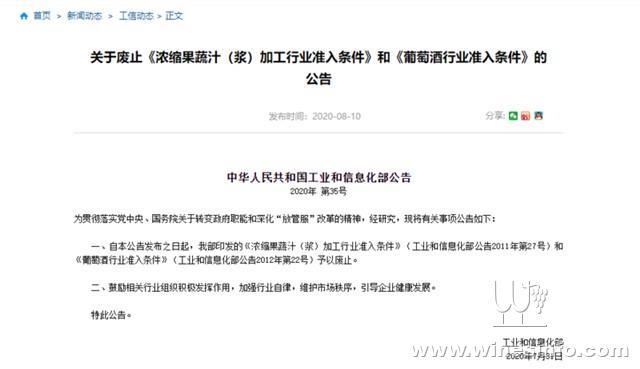 《葡萄酒行業(yè)準(zhǔn)入條件》的廢止,意味著進(jìn)入葡萄酒行業(yè)已經(jīng)沒有了以前項(xiàng)目建設(shè)、環(huán)評(píng)審批、土地供應(yīng)、信貸投放、能源供給、質(zhì)量和安全監(jiān)管等方面的門檻。