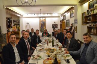 2022年11月21日,駐北馬其頓大使張佐應馬其頓商會會長安杰洛斯基邀請,赴寶韻酒莊考察。使館經商參贊何丙華、馬其頓商會機械制造、信息技術、農食品加工、物流運輸等行業的十多位企業家代表參加了考察活動。
